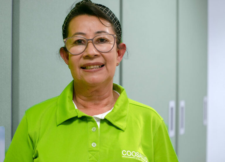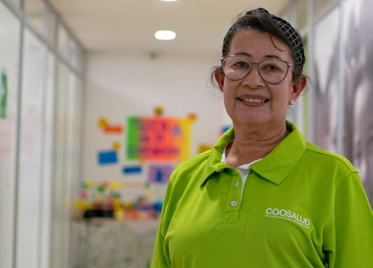 María Consuelo Aria es una de las fundadoras de Coosalud en Antioquia y es gestora municipal del área de Aseguramiento en la sucursal de ese departamento, donde lleva más de 15 años entregando lo mejor de sí para la atención de los afiliados de la EPS.
